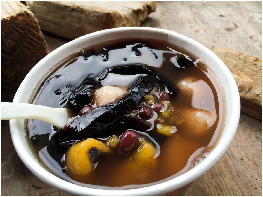 內容、口味跟九份國小老街旁邊的『賴阿婆芋圓』非常相似,偷偷問了一位藍姓計程車司機,他住在不厭亭往雙溪途中,藍哥說這家是本店,上面老街那家賴阿婆是這家的分店,因為老街人潮多在那裡開分店,結果生意比本店好,他都帶客人吃本店,喔,原來如此,難怪二家內容、口味感覺非常雷同。