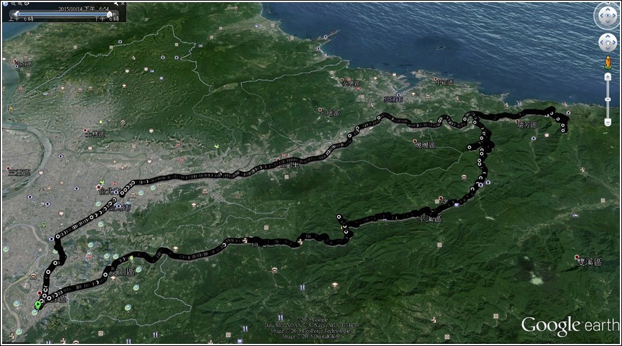 再來,若從今天原路返回得騎70公里,若從瑞芳接2丁省道到八堵騎台5線坡度緩,再接到台北市的八德路、基隆路返家沿路的路燈比較明亮,路程只需52K,就算頭燈沒電也不用擔心,於是選擇這條最短的路徑回家。