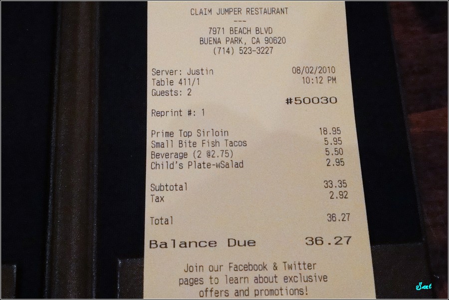 Claim Jamper Restaurant好吃的牛排、烤馬鈴薯讓小狼特地拿Name Card,說下次來美國記得還要來吃喔。