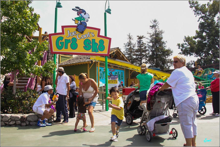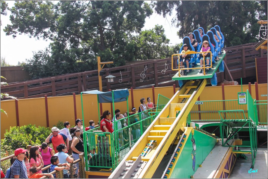 Knott’s諾氏夫婦在1920年在這洛杉磯鳥無人煙的荒郊野外開闢草莓園,所製作的草莓醬和炸雞深受到老美的喜愛,諾氏夫婦為了大排長龍的顧客們不會太無聊,設立了遊樂場、餐廳和飯店,現在又增加了水上遊樂場,諾氏夫婦真的是天生「生意命」,投資什麼就賺什麼,實在真厲害!
