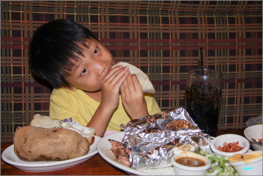 小狼說牛排、烤馬鈴薯好好吃喔!