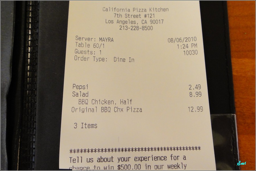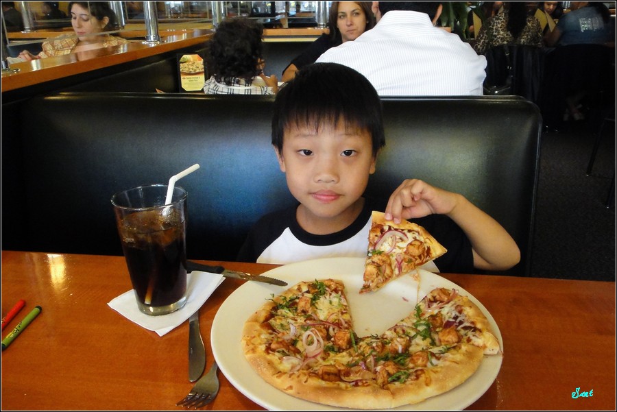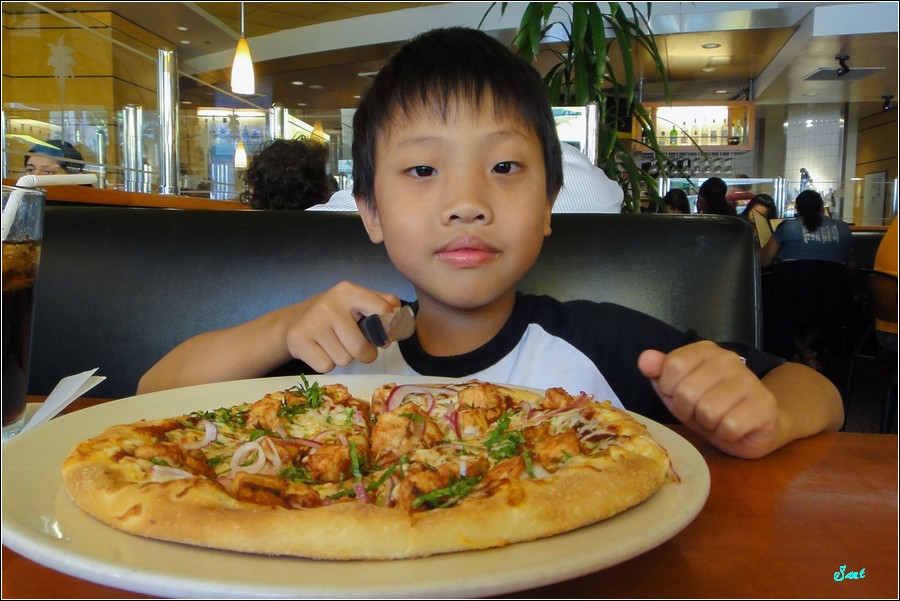 美國餐食份量都很多,所以只單點一份就足夠二人飽了,老狼故意不點Eric最愛的夏威夷披薩,點BBQ Chicken+沙拉!