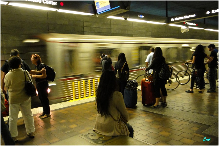 第一次在美國搭地鐵,雖然有旅遊書做導覽,臨場還是搞不清楚,帶著小狼在地鐵站一直走一直走,想買地鐵票,走到月台,車班也來了,才發現老狼還沒買票。