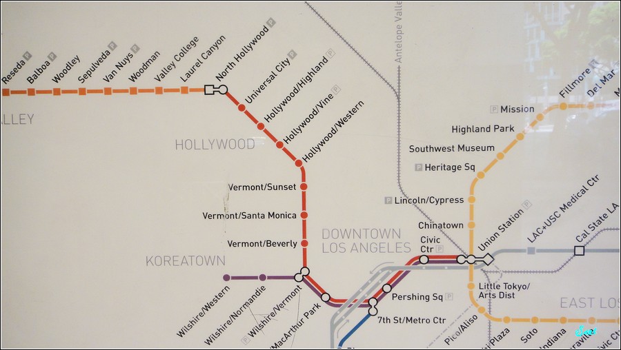 看來洛杉磯的地鐵沒有很擁擠,大概是老美習慣自駕出門,來美國旅遊,真的是沒車等於沒有腳,我們的確浪費太多時間在交通上,不過也讓我們體驗了不同方式的旅遊,也讓Eric學習了許多學校理學不到的生活方式。