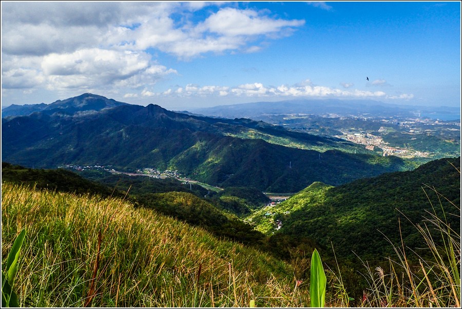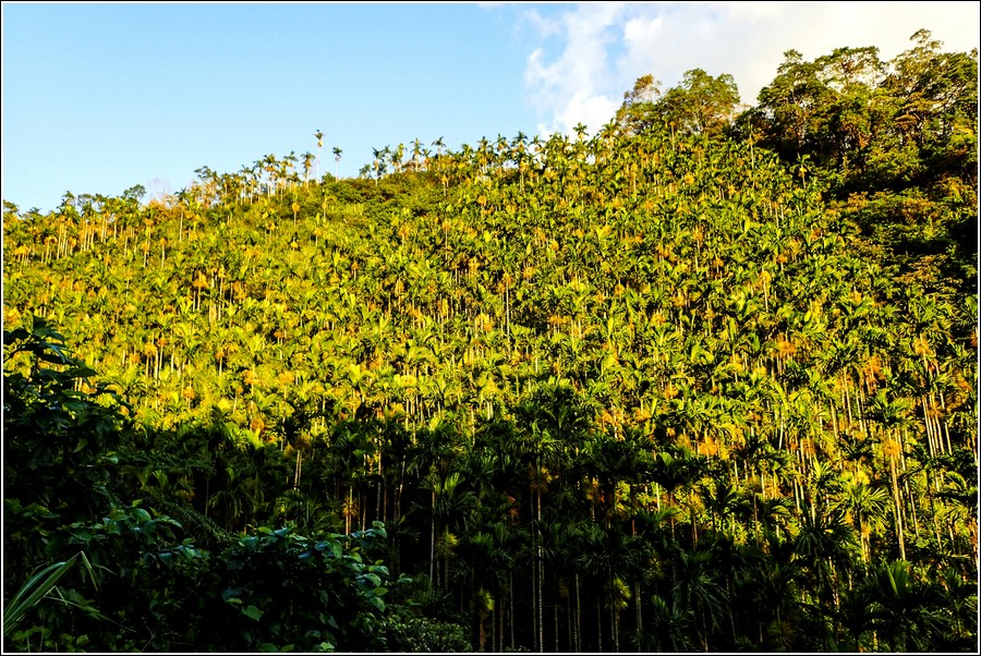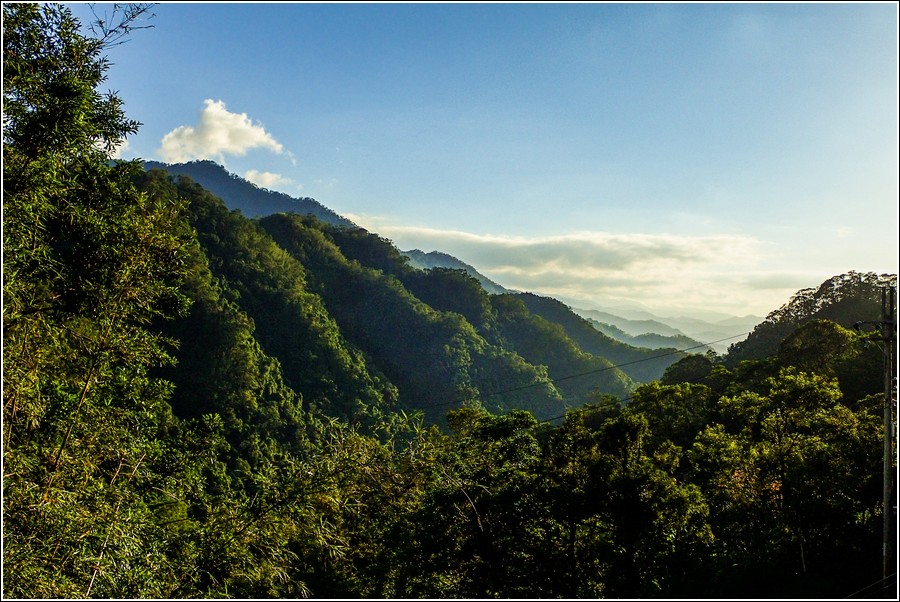 煦麗陽光和小雲朵合力將山頭染色,像飛揚在少女肩燦爛豔麗的秀髮。