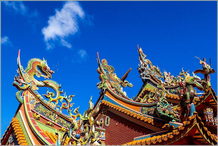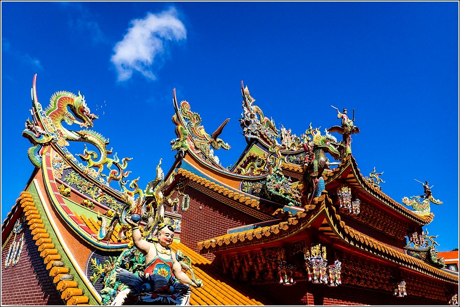 離開威靈廟沿著柑腳溪蜿蜒上行,沿路有多座很特殊的石頭屋,尤其這座有晒穀場的石頭屋別具風味,於是把龍頭一轉衝上去瞧瞧,沒想到好幾隻土犬汪汪汪追上來,挖靠,趕緊掉頭衝下坡,狗狗還是死命狂追,老狼拼命踩,很少狗狗能追這麼遠,害狼腿差點抽筋,嚇死狼!