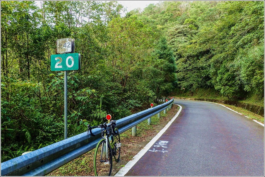 從北42縣道最高點下溜沒多輕鬆,因很多路路面皸裂嚴重,公路車很顛,不敢放速狂溜。