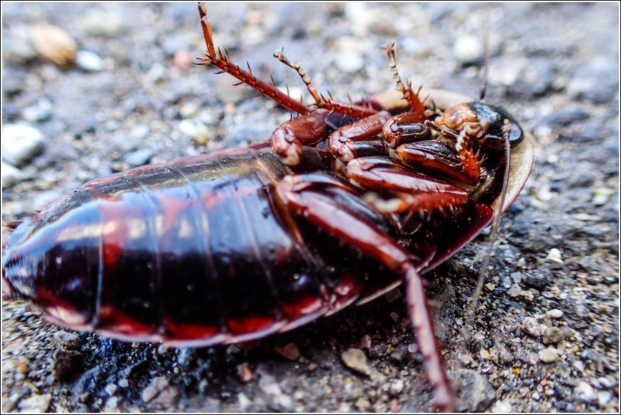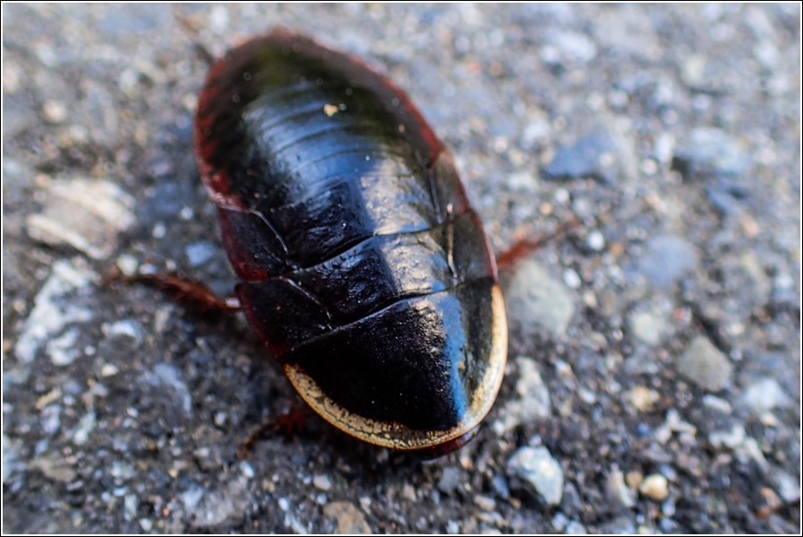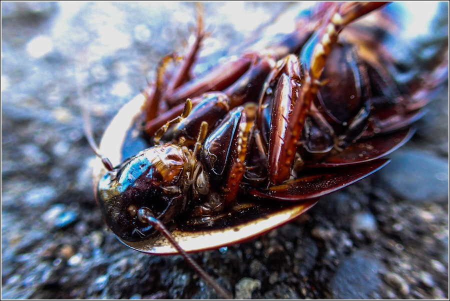 在九份觀光山城前最後一個彎道前休憩,山澗旁好多這種長的像蟑螂的昆蟲。