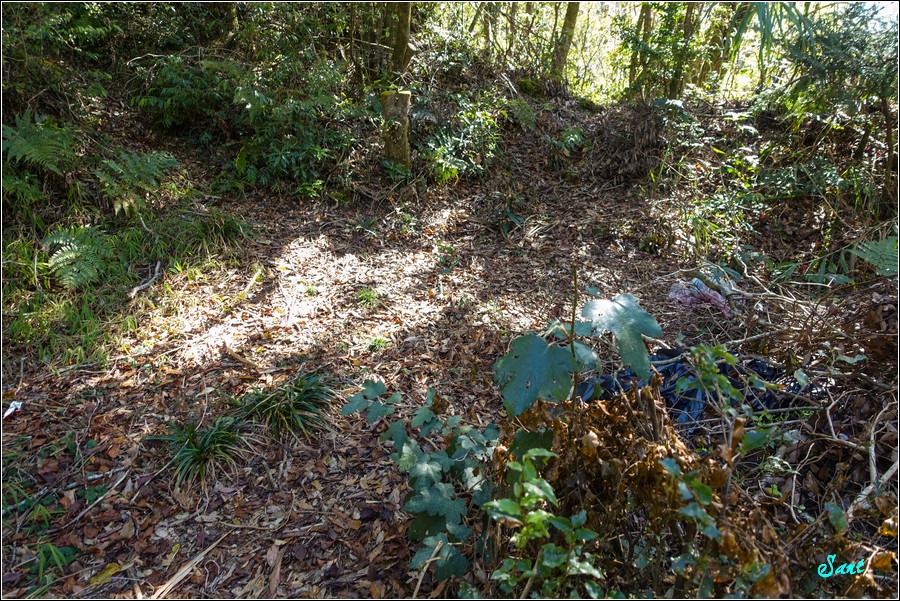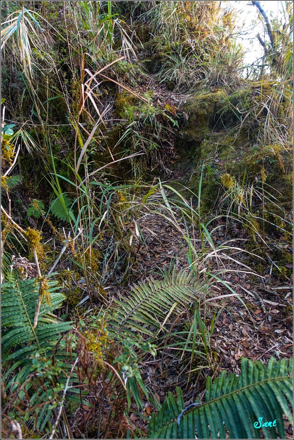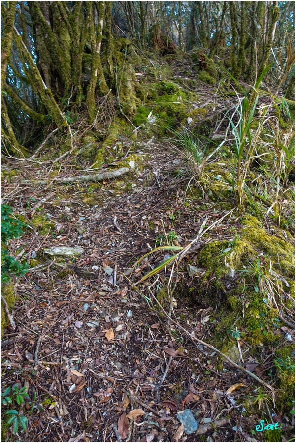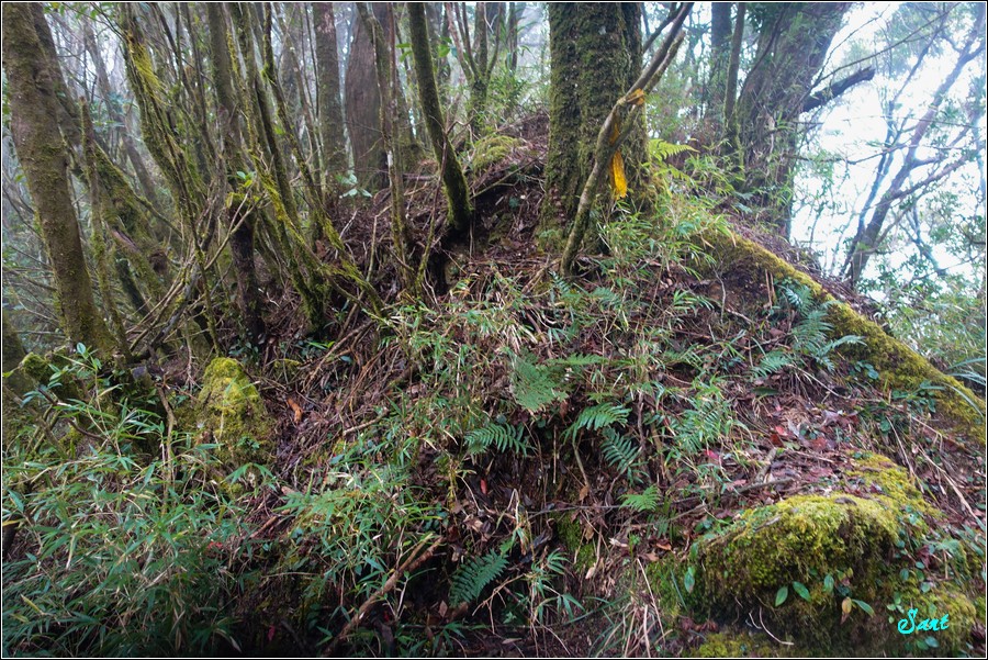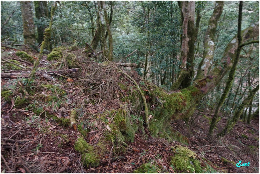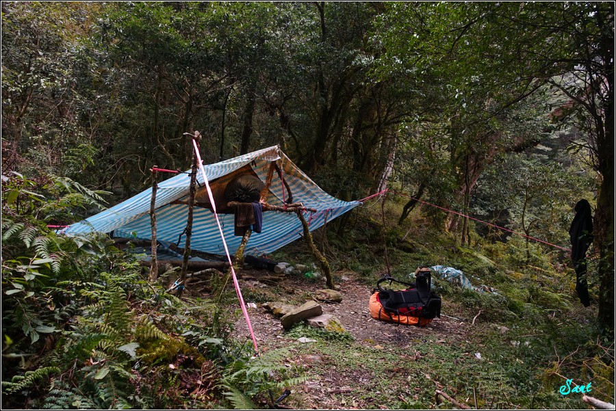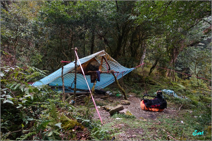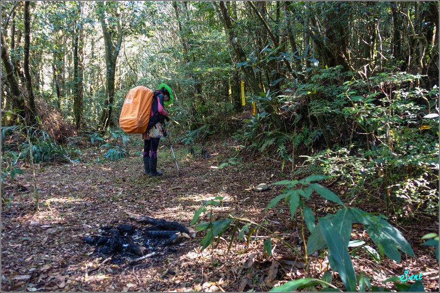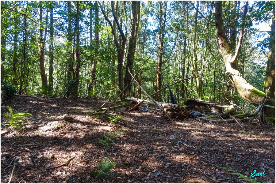 09:51 多納林道往大鬼湖登山口前遺留山友、獵人過夜取火的小營地。