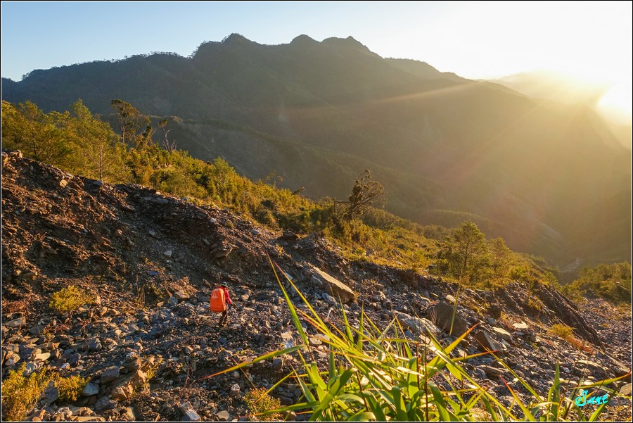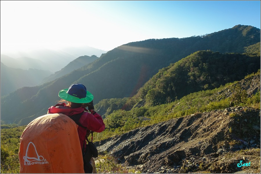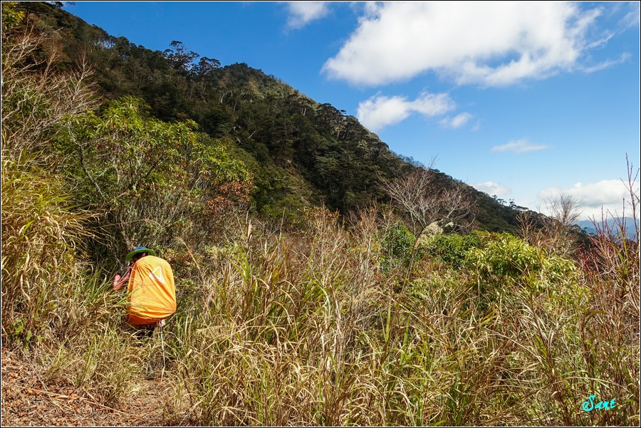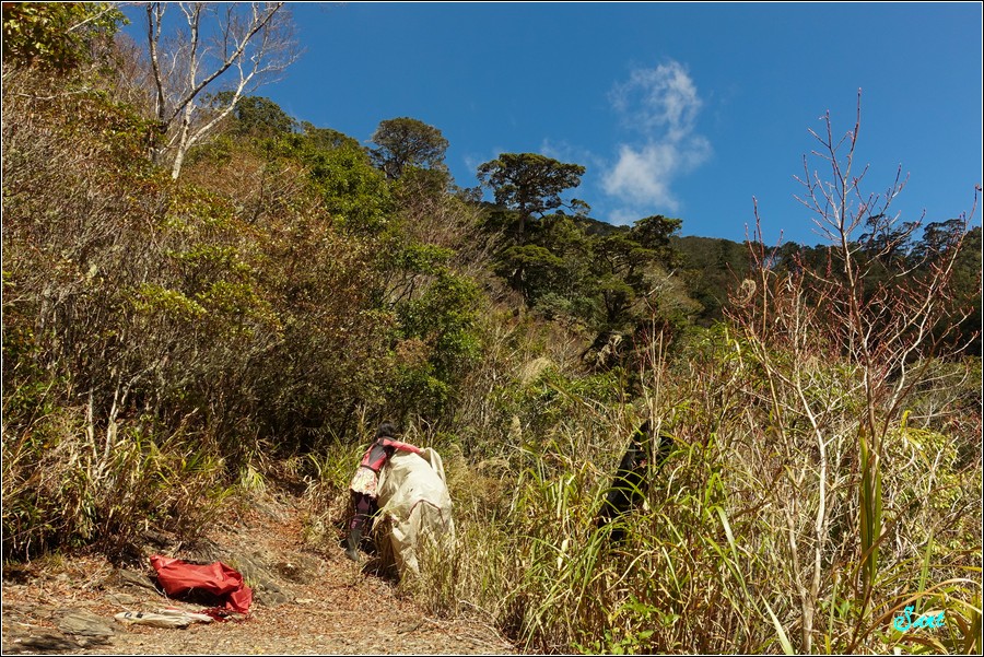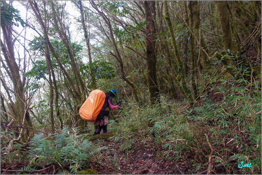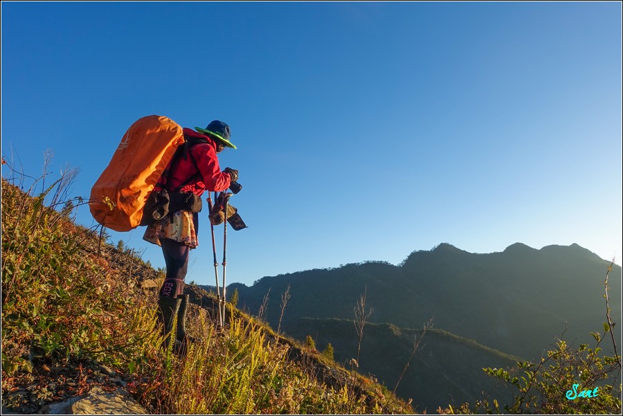 08:18 百岳女王Gigi身手矯健,背包多老狼起碼5公斤依然輕鬆自在,老狼在後苦苦追趕,氣喘吁吁,一直拍照只是停下來喘大氣時隨手拍。