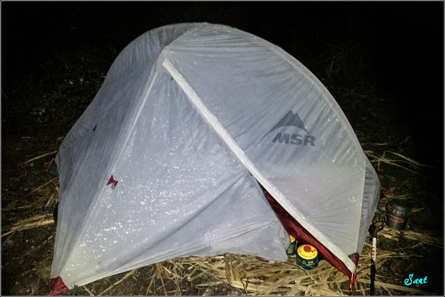 搭好帳篷,Gigi:「你要跟我去取水嗎?白天來回20分鐘,晚上摸黑可能要30分鐘。」