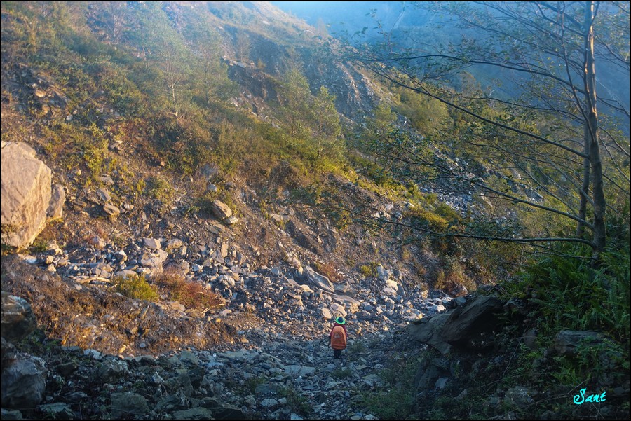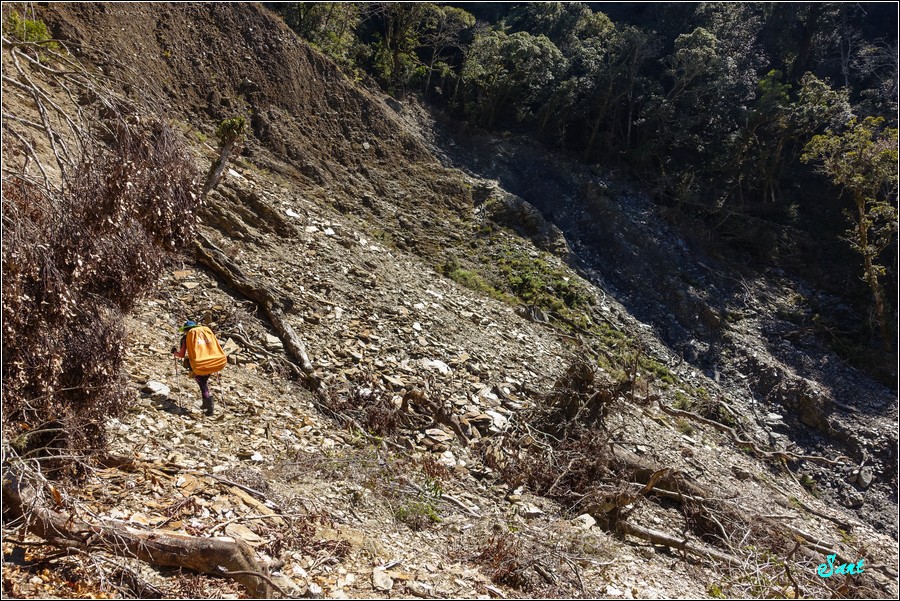13:31 這二天過了一道又一道坍塌,上午在坍塌處滑落,所幸無傷,這道坍塌看起來不好惹鵝!