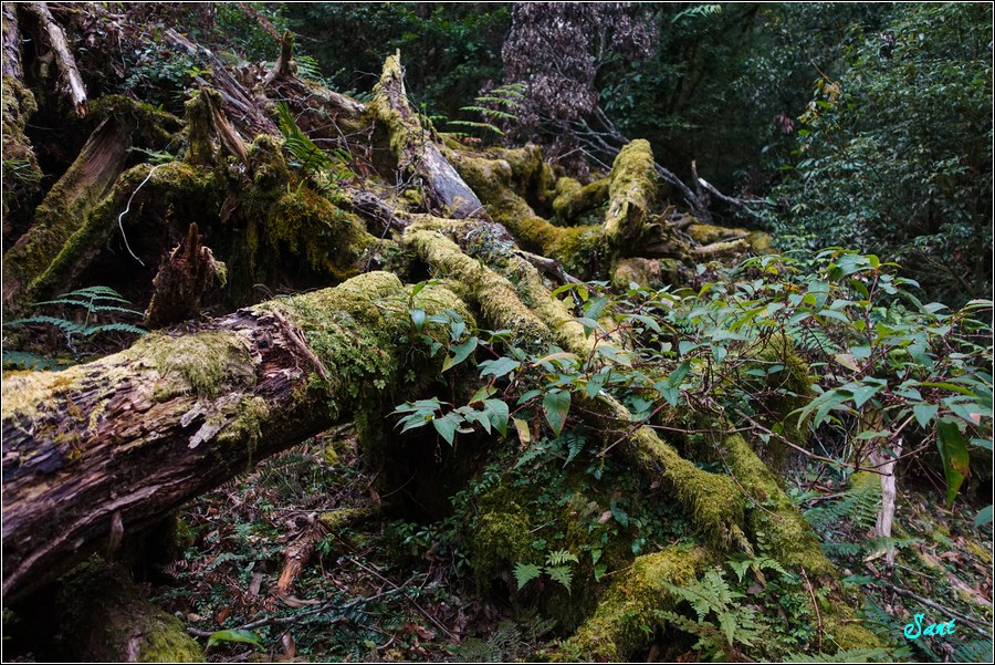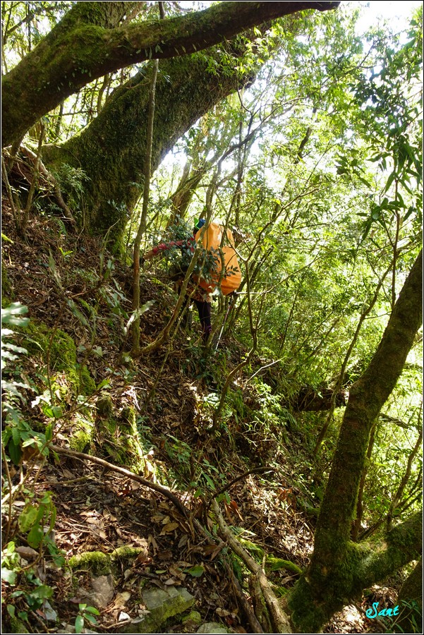 行程:大母母山西北鞍崩谷→沙溪林道交會處→倫原山叉路→大樹洞(檜木)營地,若1400 前到大樹洞可+3.5Hr→雨谷亭