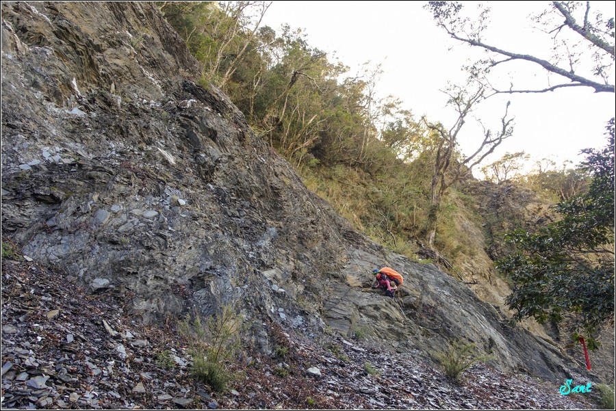 08:48 輪到老狼攀登小斷崖前往右側崩谷拍照