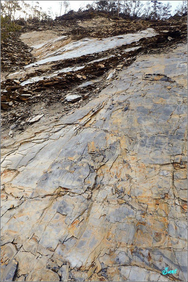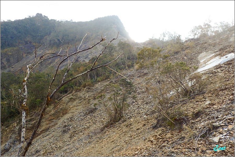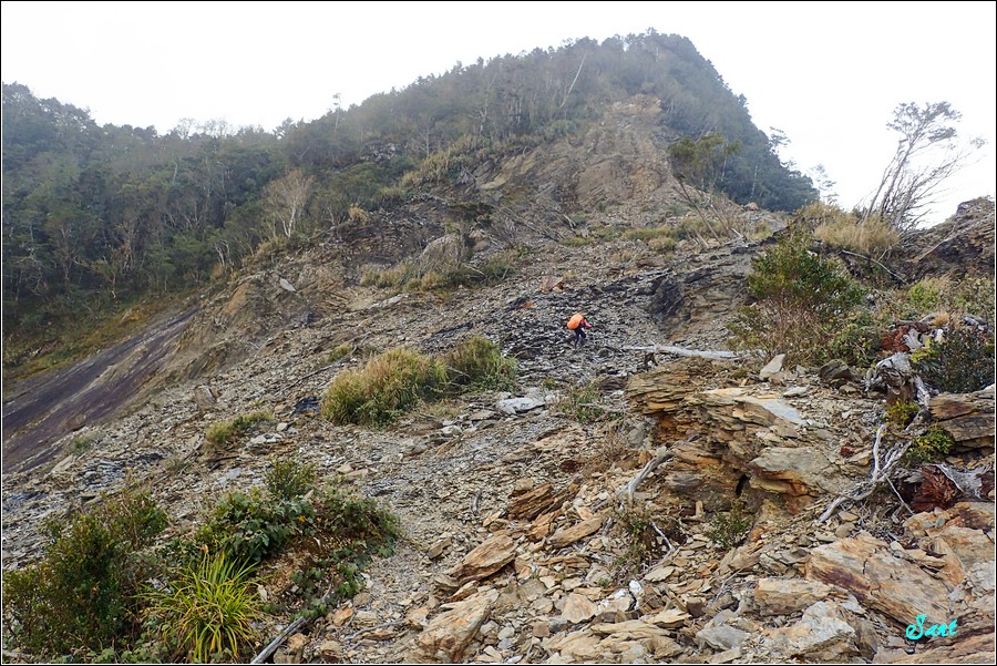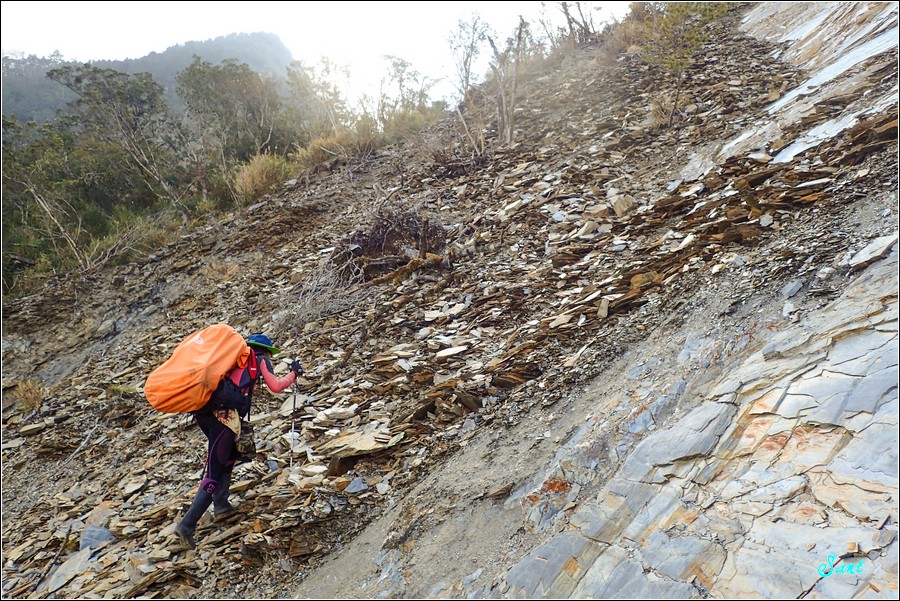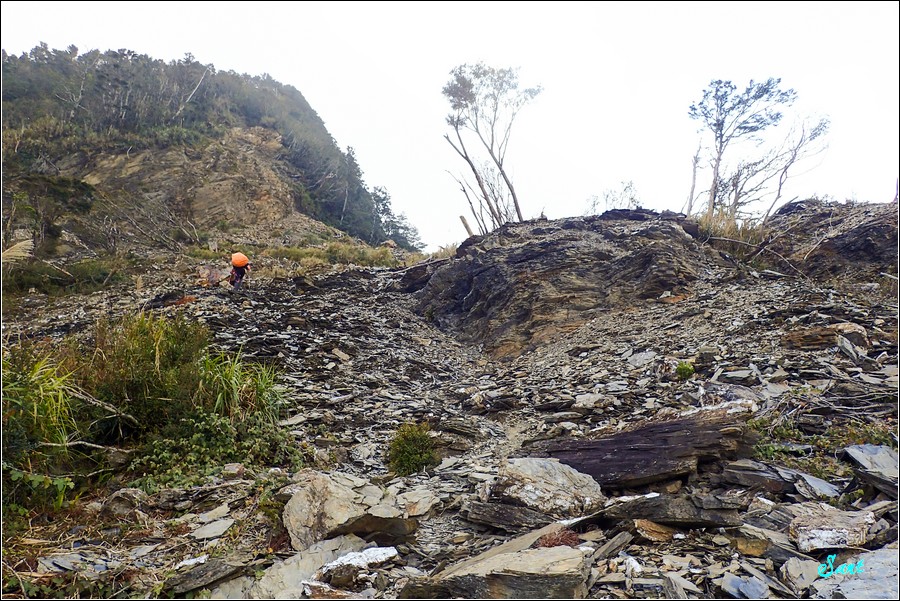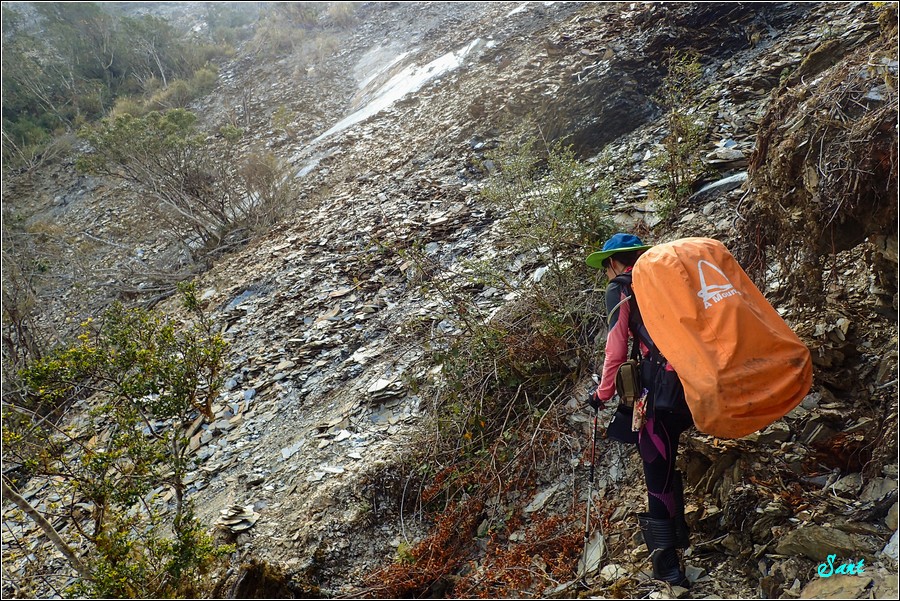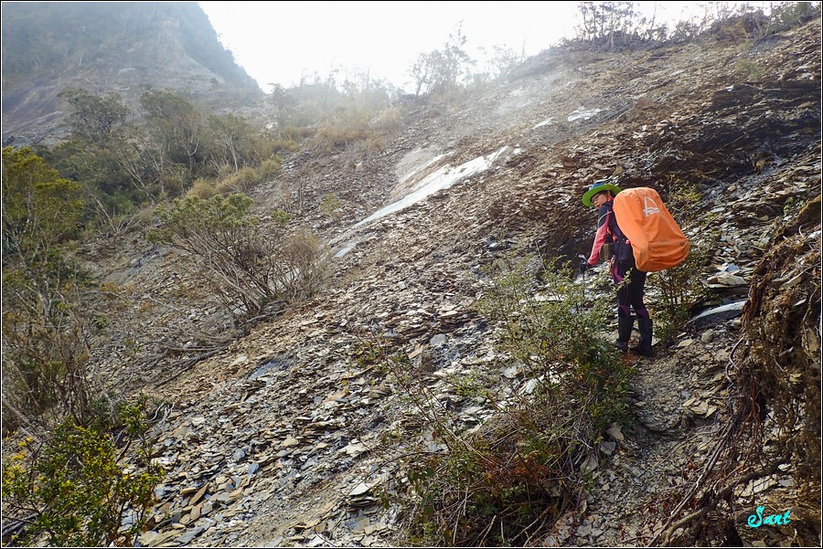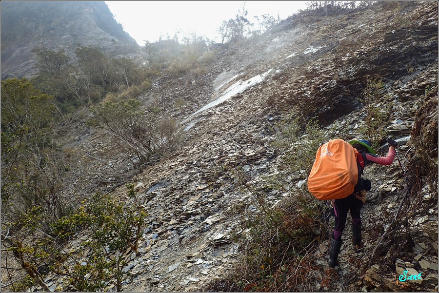 15:54 第二天下午被一處崩塌光滑頁岩困住不敢通過,不是這一道坍塌。