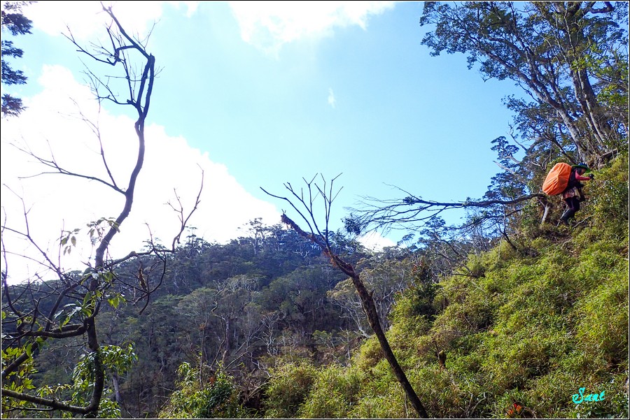 12:42 檜木營地到倫原山登山口的景色,是在第二天黑中是完全看不到的,走的非常勞累、萬分恐怖,白天走起來踏實多了。