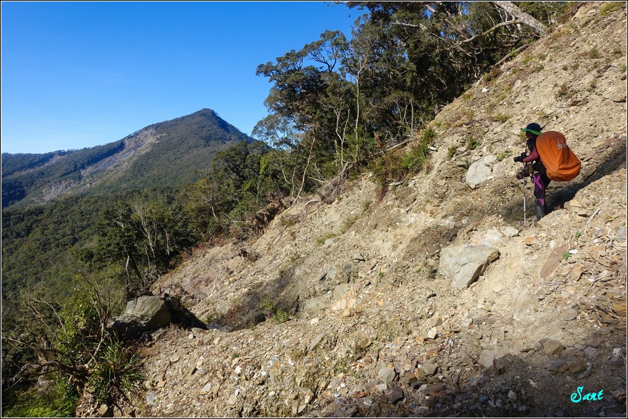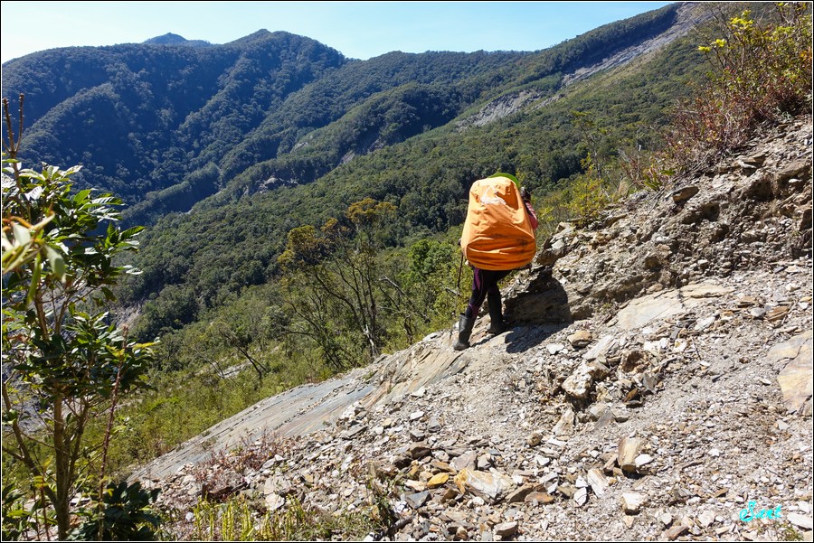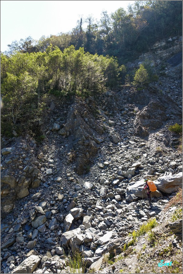 Gigi切錯路了,立馬修正,再往前沒路可以橫渡崩壁。