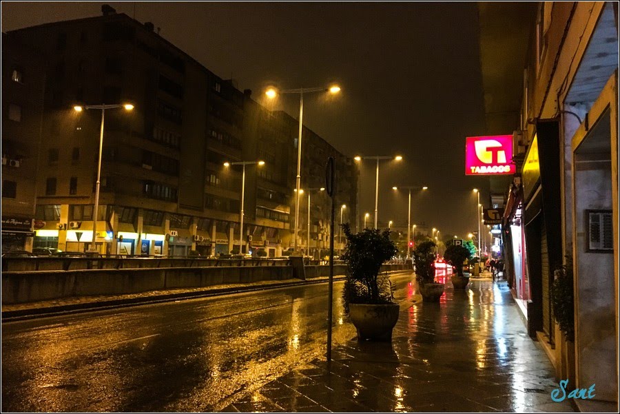 晚上11點40才抵達普拉多聖巴斯提安巴士總站(Prado de san Sebastian),雨神不但一路勾勾纏,來到賽維亞更加潑辣,老狼行李全被偷光,當狼連雨傘也被小偷拿去,那支是小紅帽買的新雨傘,很貴啊!