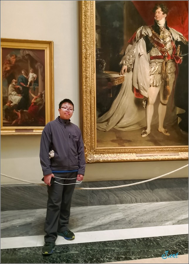 通常博物館的畫作都會受到懸掛位置比較高以及室內燈光折射影響。像維基網提供的照片能拍的那麼正,沒有受到畫作懸掛角度的偏斜、燈光影響都是學術研究單位在特殊的情況下:原作取下、避開燈光直射、專業相機才能完成。