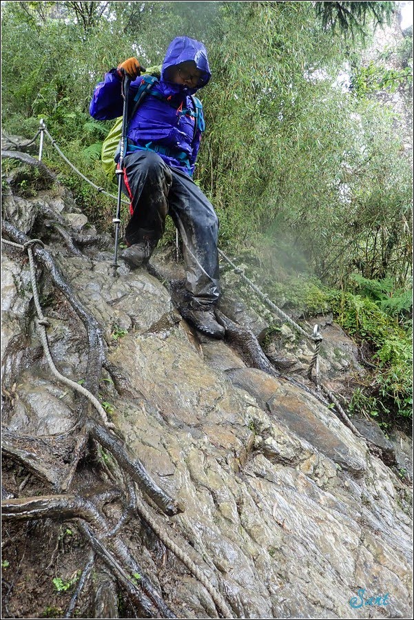 前天的午後雷陣雨中之猛烈,是用「強渡暴雨五岩峰」當標題,今天的回程是用「淒風苦雨五岩峰」當標題。