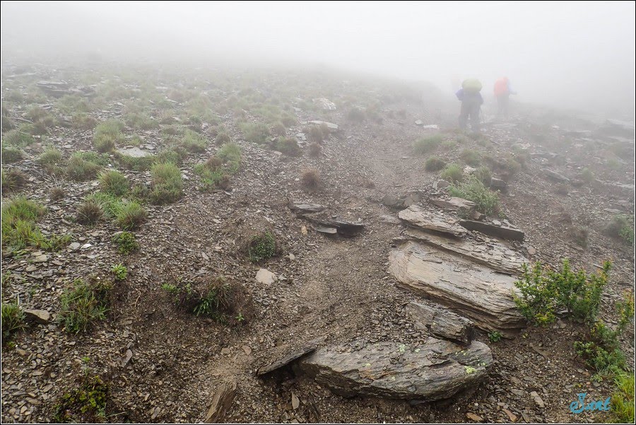 07:43 原本狂風在碎石坡多少有些助力,狂風在五岩峰上的穿的心頭皺,因為在五岩峰上就是有山友曾經被狂風吹送到山谷裡,事實上比前天暴雨五岩峰更加危險。