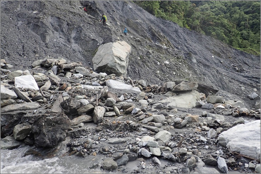 07:45 玉林橋已經消失十幾年,由小紅帽的位置可以明白為何玉林橋會在多年前的颱風裡消失殆盡,現在是一大片崩塌地。