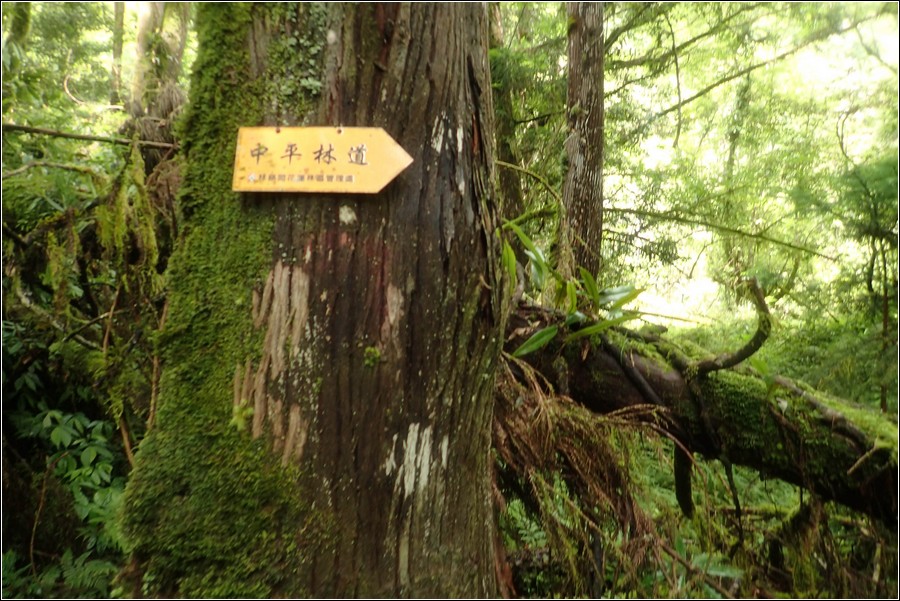 06:58 中平林道原名玉里林道,林務局為砍伐珍貴扁柏而開闢,這棵神木可能長的不夠直挺得以存活至今,相當珍貴。