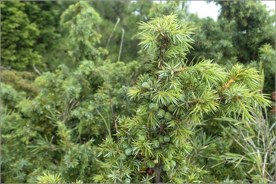台灣刺柏,分布於海拔2,400-3,400米地帶,雪霸公園裡頭的高山是台灣刺柏大本營,花期:4~5月,球形漿果成熟時為橘色或紅褐色。