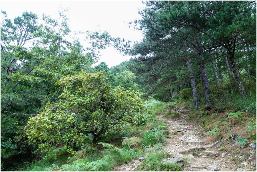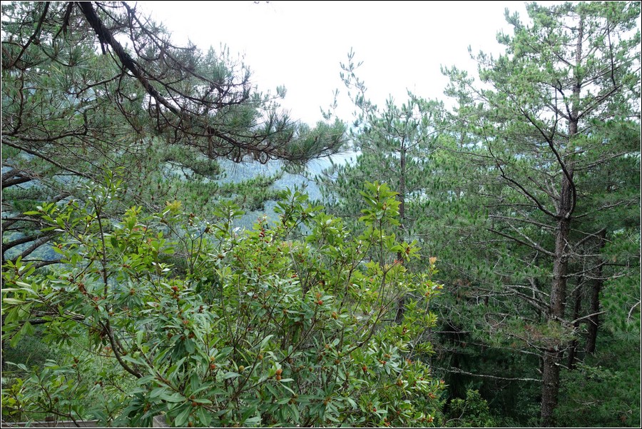 路旁一叢很翠綠的細葉杜鵑(志佳陽杜鵑、南湖大山杜鵑、北部高山紅花杜鵑),台灣特有種,分布於2,000~3,500米地帶,花期:4~5月。