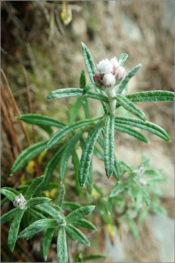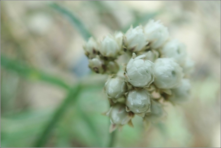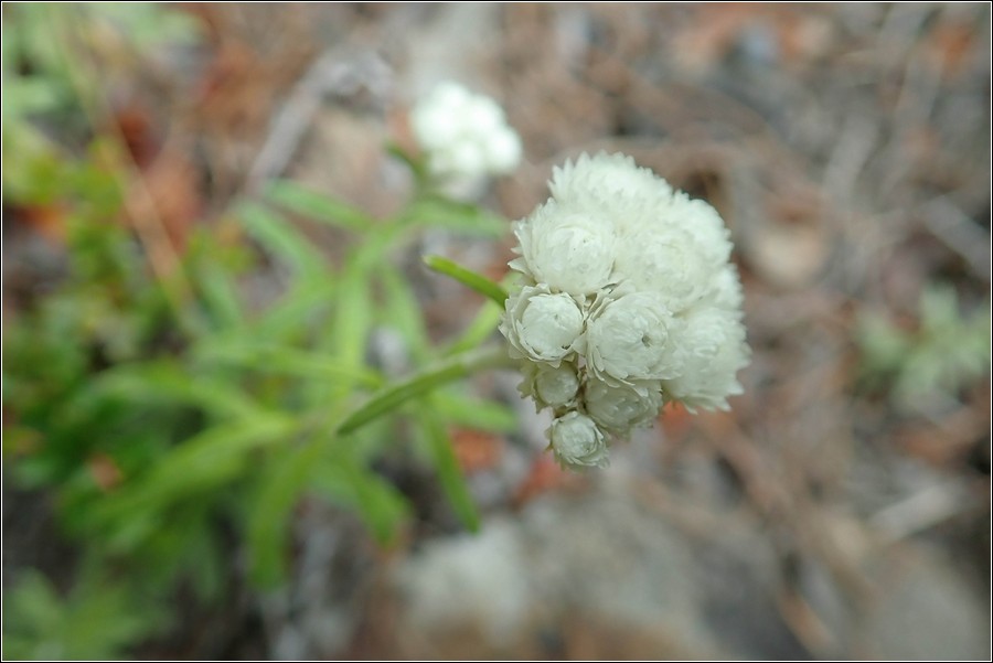 玉山抱莖籟簫(白花香青),分布於2,200~3,600米向陽地帶,花期:7月上旬~9月。
