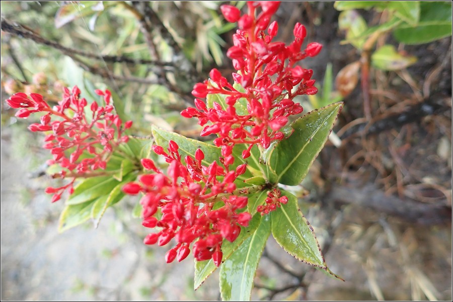 高山白珠樹,分布於1,600~2,000地帶,屬於十分普遍的高山植物,花期:3~6月,成熟果實可食用,汁多味甜,是野外求生最佳野果之一。