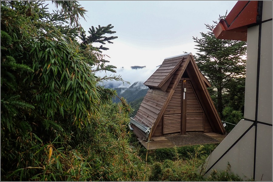 桃山山屋後面的小金字塔建築物是廁所,糞坑夠深,不用擔心穢物會噴濺而出。