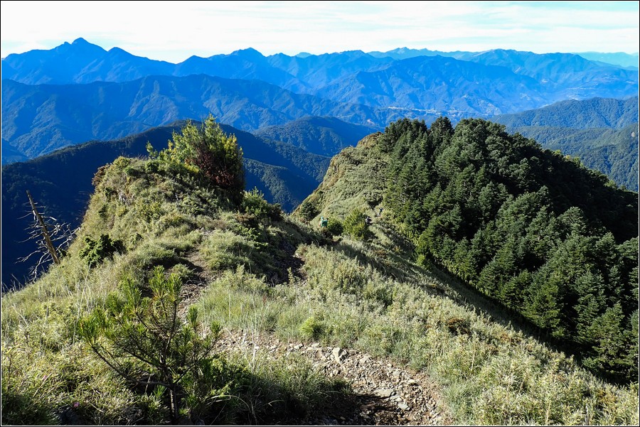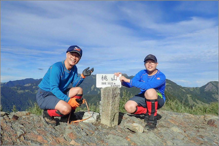 07:11 離開桃山山屋,天氣這麼好,當狼要帶小狼先上桃山三角點拜訪拜訪。