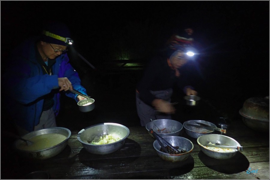當狼也要感謝壓隊阿忠提供的熱開水,他用MSR Reactor 效率系統爐 1.7L,老狼第一次見識到這款裝備實際操作,燒開水速度真的非常快,據阿忠說大約可以比一般氣化爐速度快2/3時間,因為燃燒速率佳,直接可以少帶一罐高山瓦斯,倘若走長程縱走甚至可以少帶2罐瓦斯,等於也是減少裝備重量。