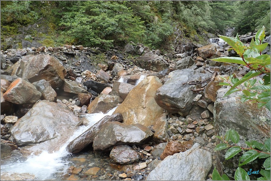 ~溪畔腹地有限,14個隊友顯的有些侷促,土石有些濕滑、鬆動,經常有隊友們滑倒情況(包含老狼),要小心啊@@