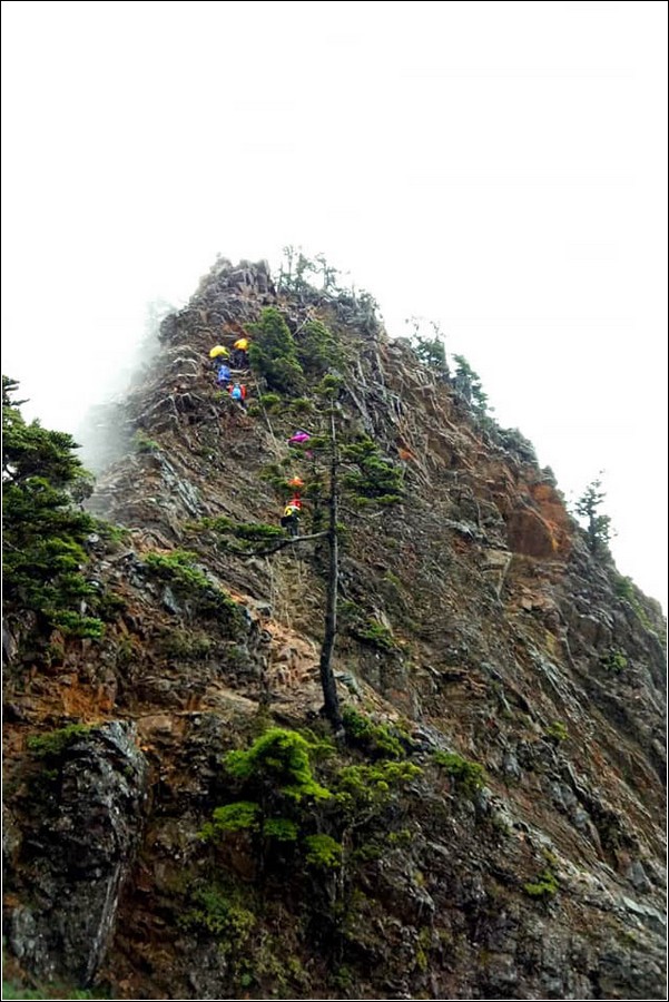阿德是男性隊友中最年輕的一位,他可能剛穿雨鞋還是穿雨鞋的經驗不夠,一路滑倒,還好都是滑倒不是摔落,年輕人筋骨有彈性滑倒沒差啦,老狼筋骨差實在經不起摔。