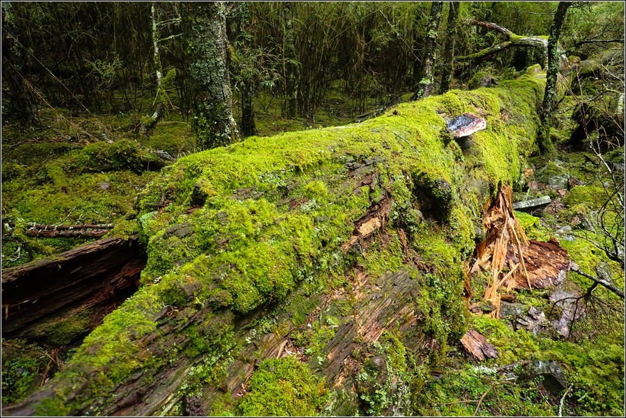 本來想拍倒木上的一支新芽,TG5傻瓜相機的光圈無法手動將背景景深變淺。