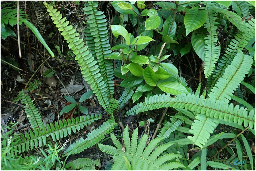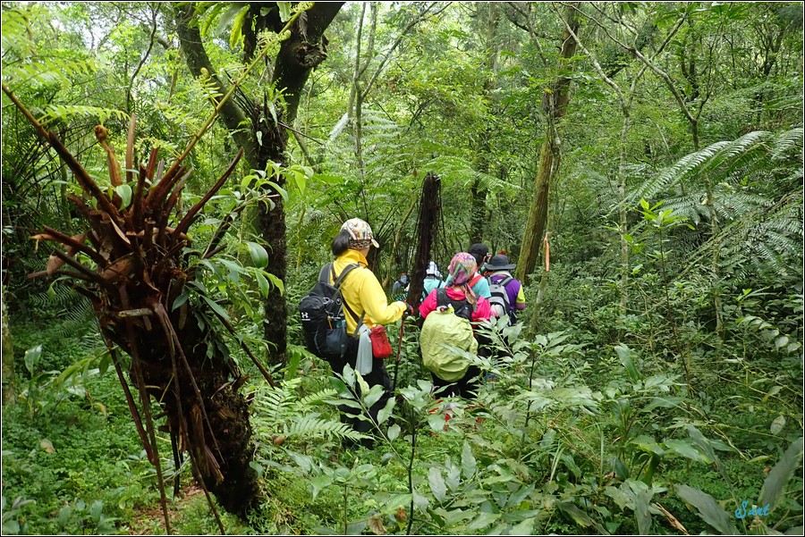 在登山口藉助輔助繩上攀,就直接感受到郊山的濕滑,土質相當鬆軟,不大好踩穩,幸好坡度不大,畢竟郊山海拔都不高。