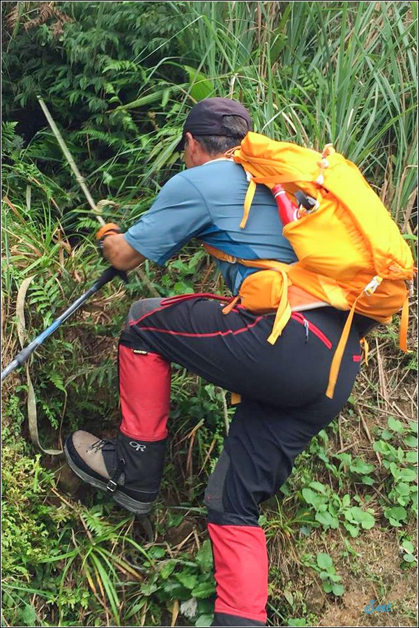 老狼明明知道夏季走郊山、中級山相當悶熱,這款又悶又濕的環境也超乎老狼預期,汗水直冒,來不及擦。老狼有想到要帶毛巾竟然給忘了