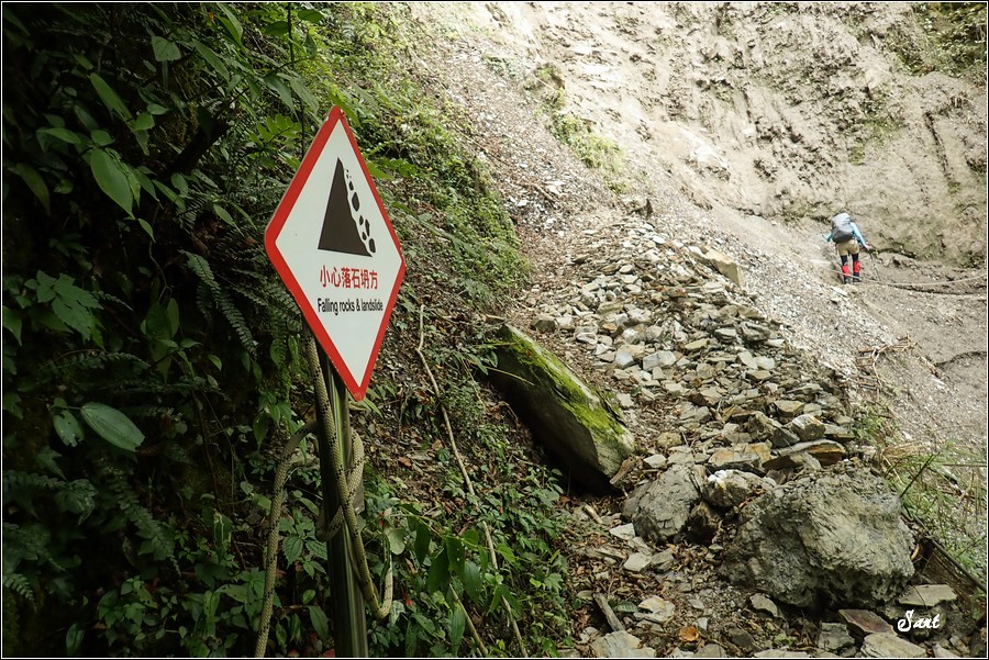 前年(2016)暑假尼伯特、莫蘭蒂強烈颱風接連侵襲台灣,一位山友想獨攀到大水窟,她就在這裡受阻,她描述當時仍持續崩塌,所以當日就撤回東埔。