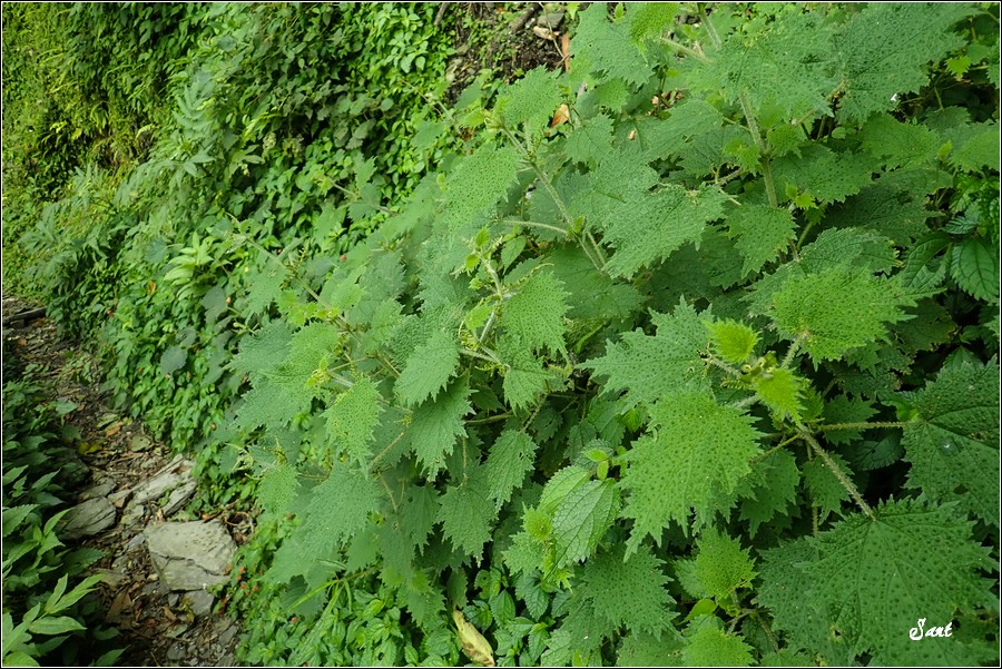 回頭一看,唉又我的老天鵝,原來是被咬人貓咬中了,這一叢就生長在古道旁,實在防不勝防,這下子會又癢又痛1~2天。