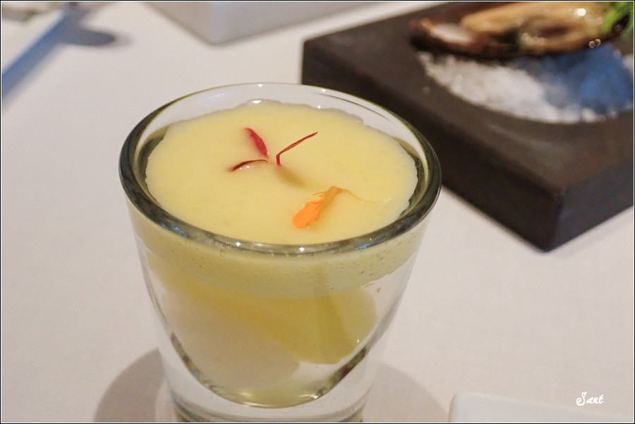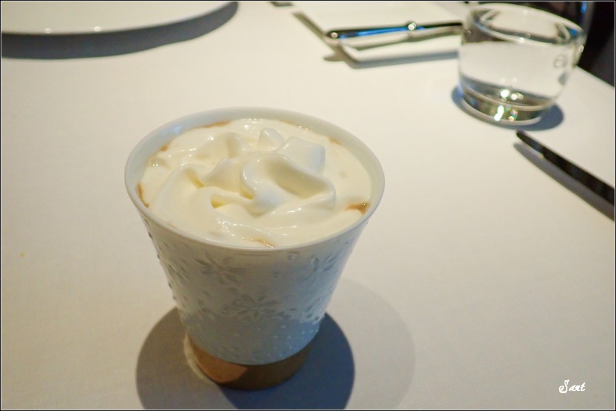 冰火牛肝菌,上層是冰奶泡,下層是滾燙的牛肝菌濃湯。