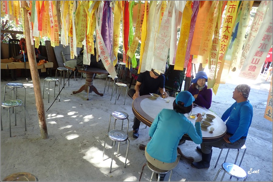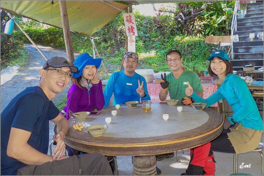 這時巧遇一位原住民大姐,她就是愛玉亭腦闆娘,她說登山口到愛玉亭山徑太陡、路徑又窄,就算是四輪驅動車車體太寬也開上不去的。