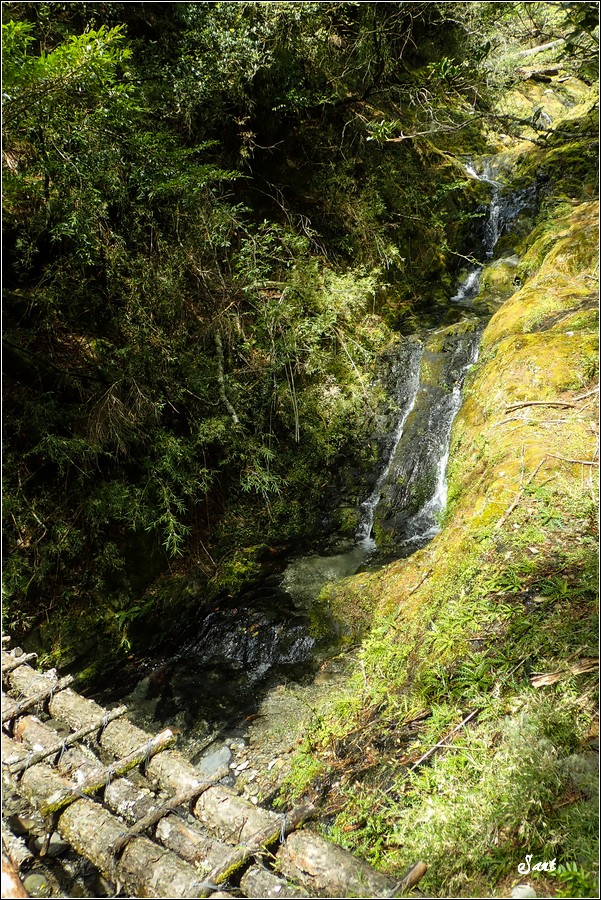 12:52 過了坍塌,站穩了回頭拍一張,剛才是從上方那二棵樹中央陡下,接著是一座已經坍垮的棧橋,自己也忘了怎麼過來的。