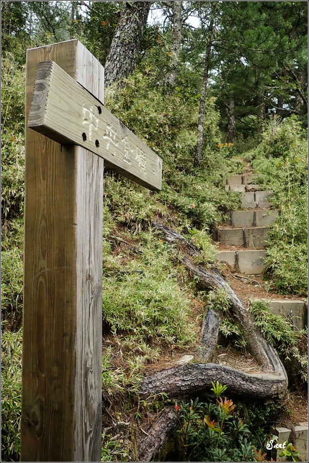12:16 往中央金礦指示牌,剛才是從樓梯上下來,取樓梯的左側接八通關古道續行(下樓梯往右)。