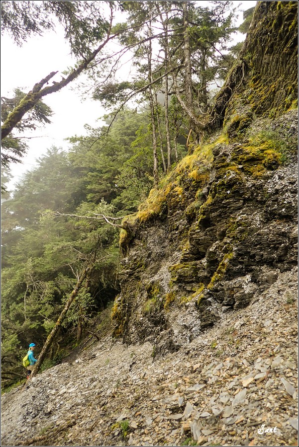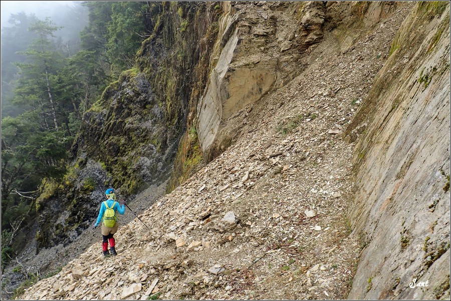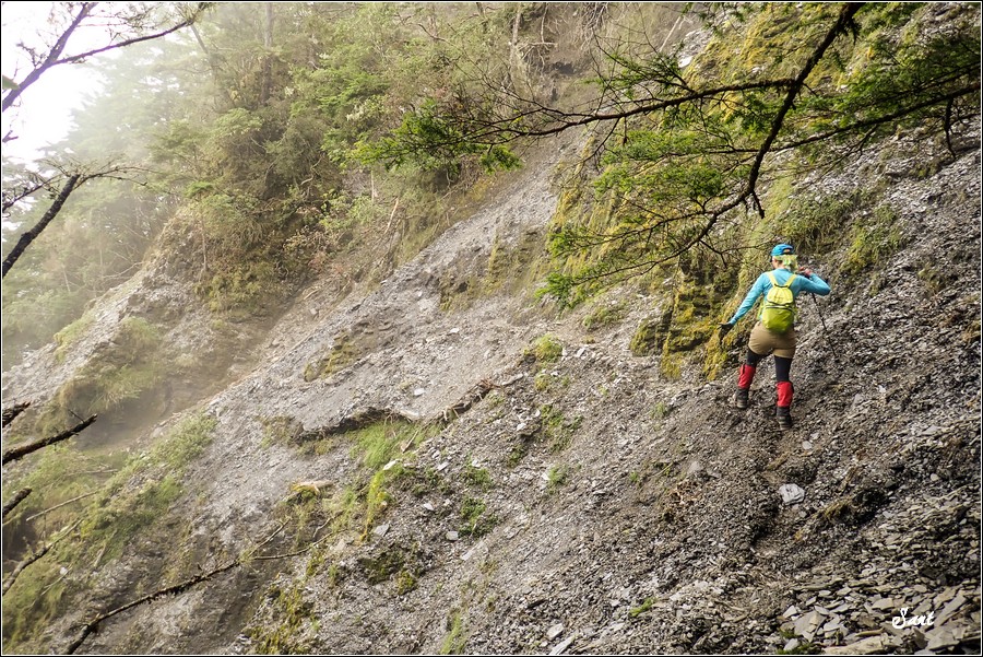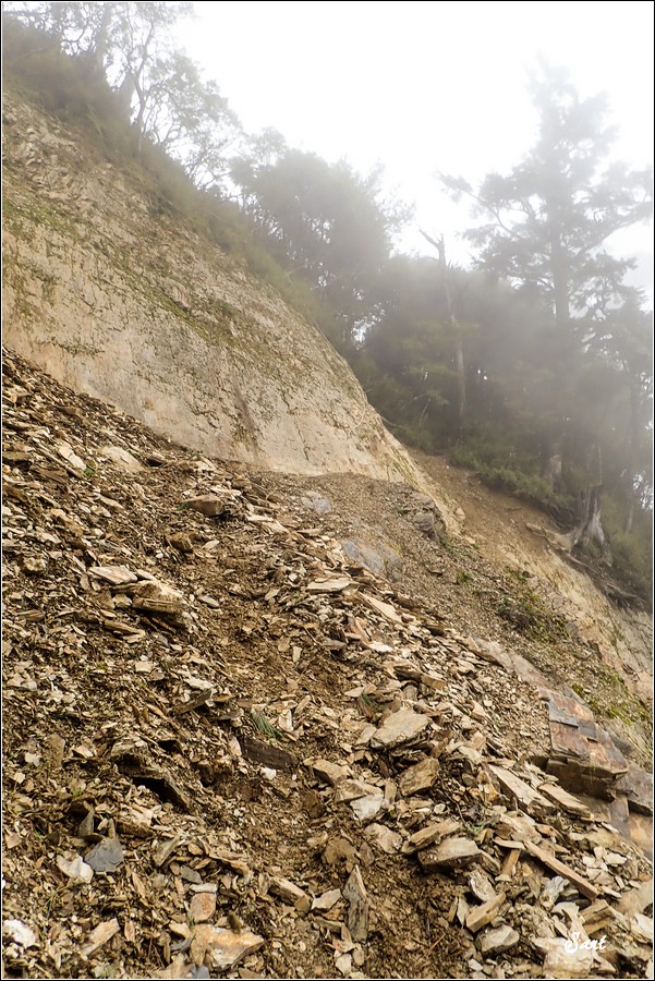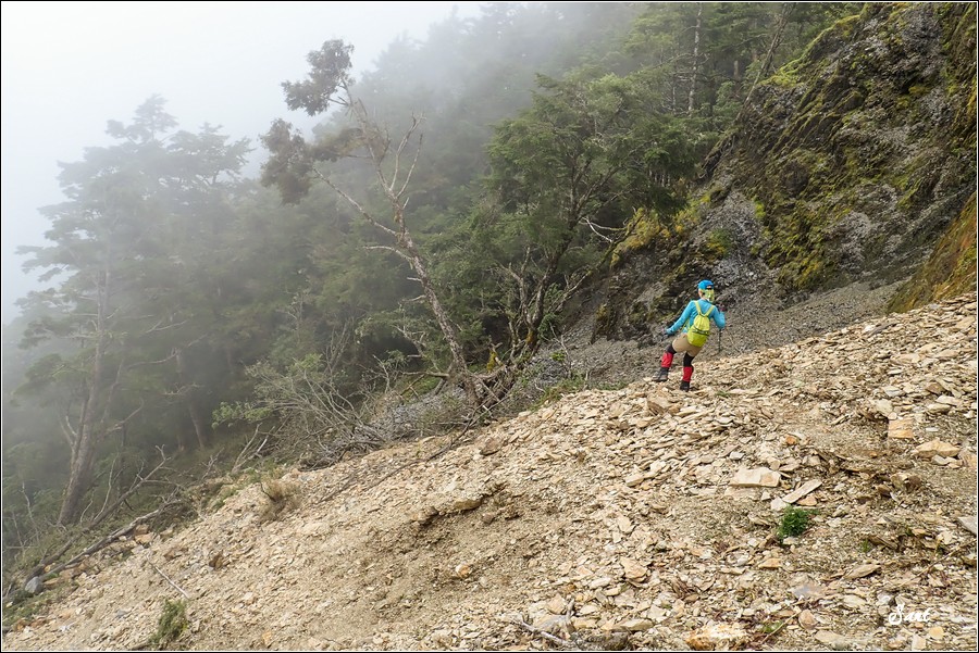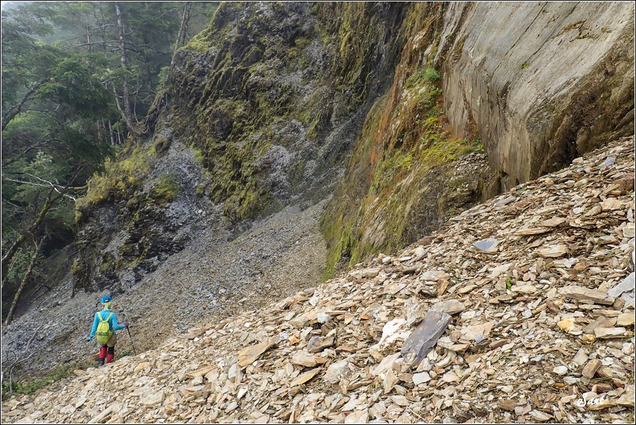從岩壁陡崖右轉後是一處相當陡的崩塌碎石坡