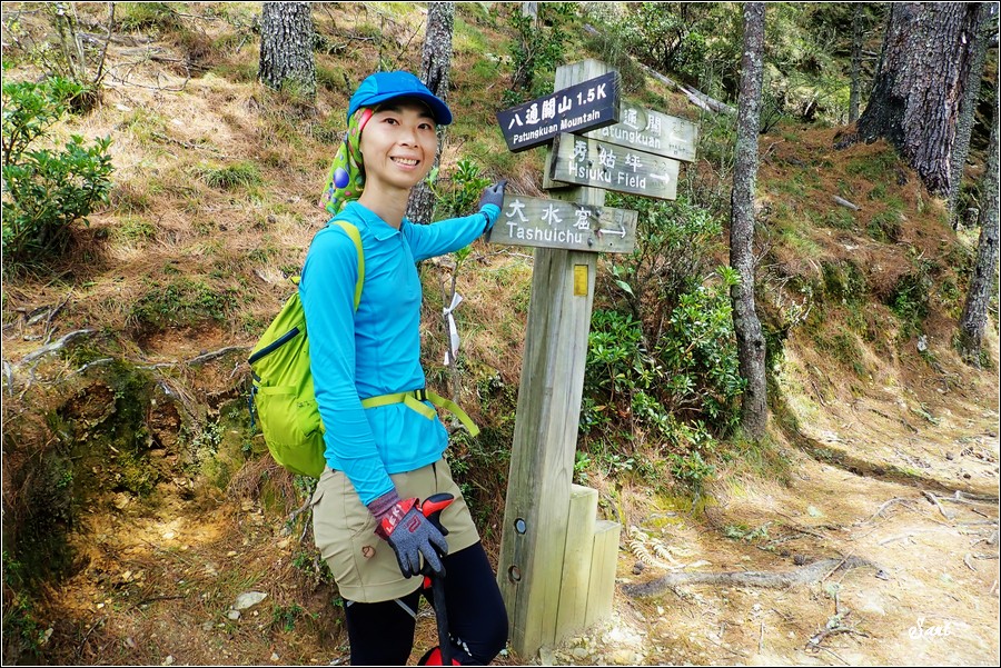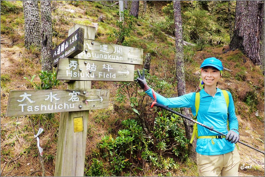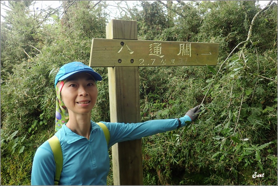 小紅帽在這八通關登山口指示牌算是第五次合照,看得出來她很開心。