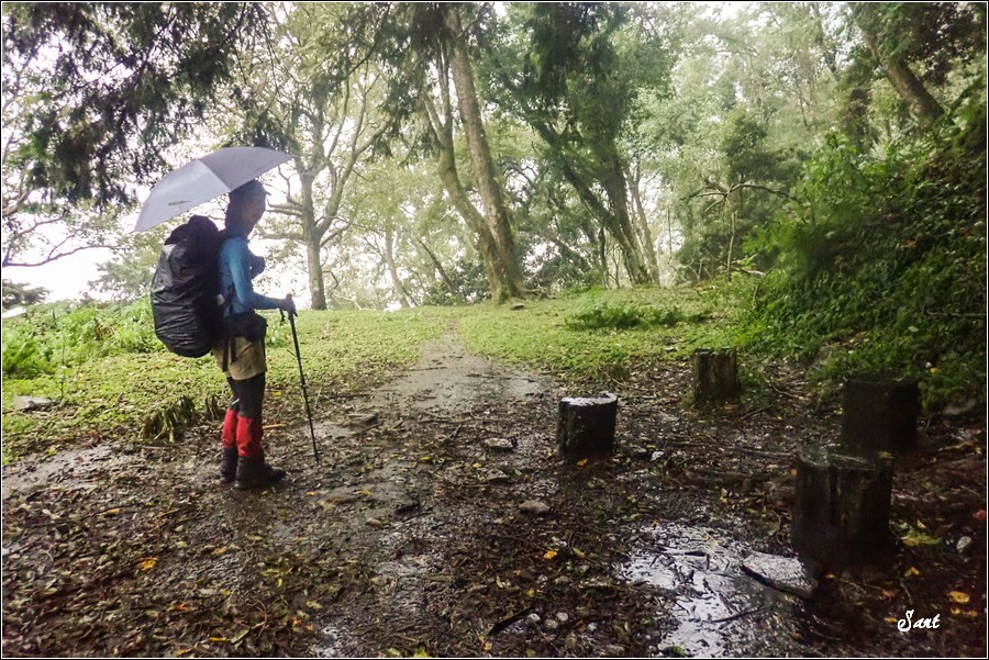 15:14 開始下雨了,這裡到樂樂山屋要踢8.73K,雖然穿狗鐵絲夾克,因為雨勢不大所以沒穿雨褲,因為穿雨褲不好走。