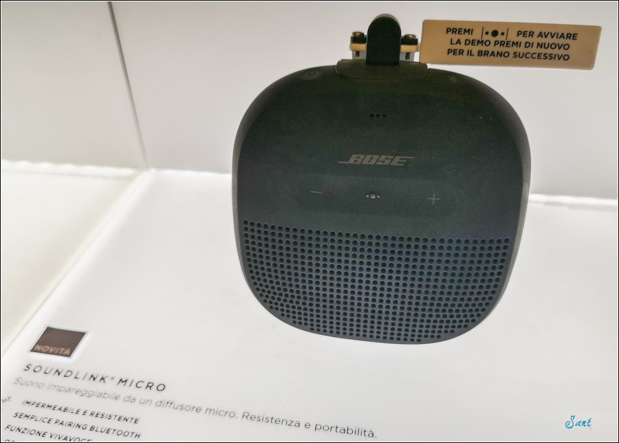 店員給老狼試聽BOSE SoundLink Micro,這顆小傢伙個頭小小卻滿夠力。