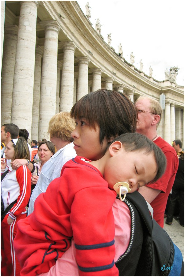 離開梵諦岡博物館,下午還有點空餘時間,再次穿越「博爾戈通道」(左前方鋸齒狀城牆)到聖彼得大教堂看看排隊人潮有沒有減少,想搶個空檔,減少排隊時間。